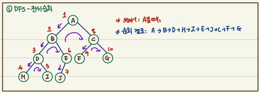- 방문 순서: 현재 노드 → 왼쪽 노드 → 오른쪽 노드