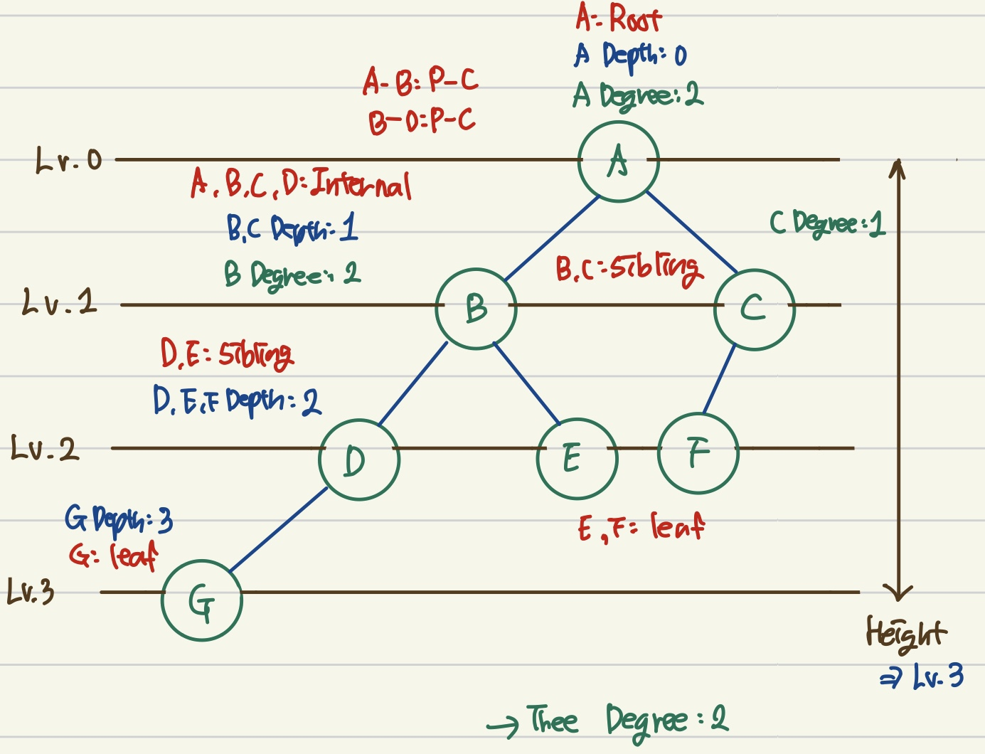 - 트리의 차수: 트리의 최대 차수