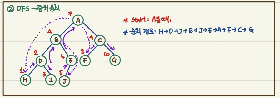 - 방문 순서: 왼쪽 노드 → 현재 노드 → 오른쪽 노드