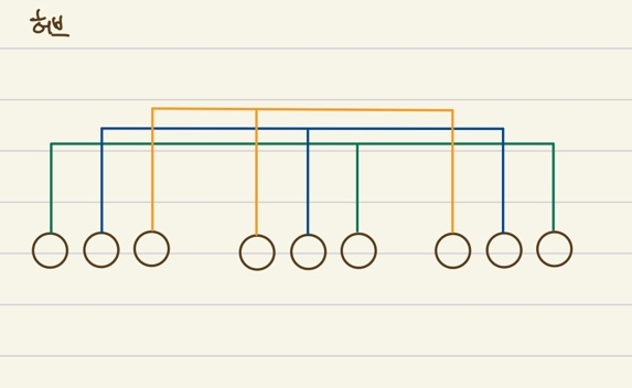 - 케스케이드 연결: 연결한 장치가 더 많아지면 포트 중 하나를 다른 허브에 연결해서 연결 대수를 늘림