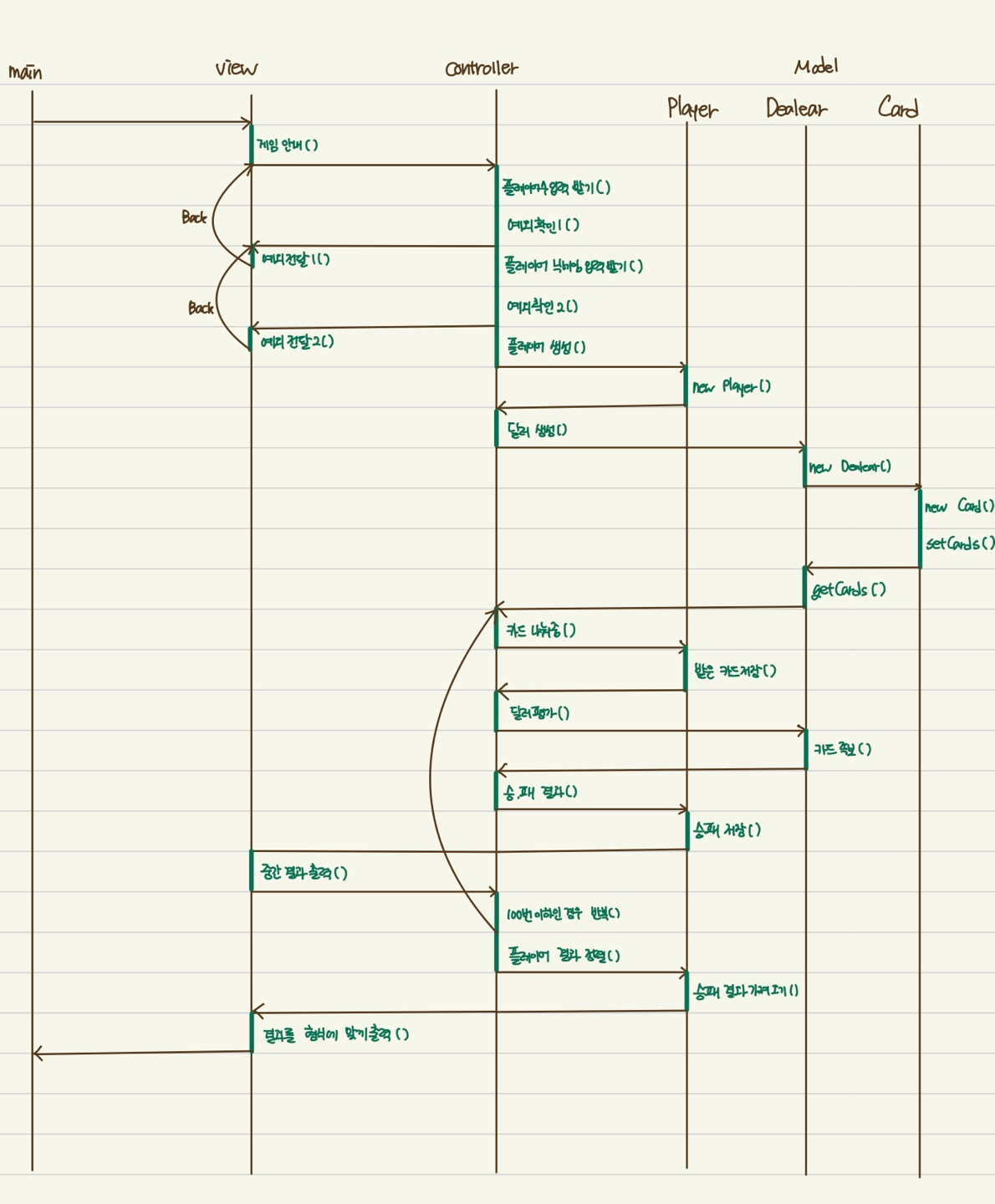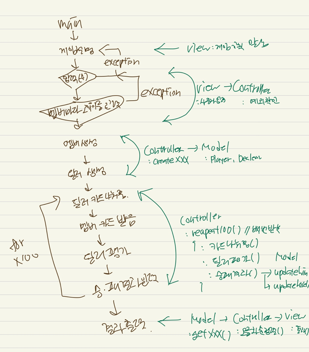 이 코드는 Dealer 객체의 기능을 테스트한 것입니당. 딜러가 가지고 있는 기능들이 많잖아요? 그 기능들은 대부분 이 Dealer 클래스를 만들 때 한 번에 구현합니다. 그런데 막상 구현하고 실행하니까 딜러가 생성이 안된다거나, 딜러가 카드를 가지고 있지 않다던가, 카드를 섞지 않는다는 가 등등의 문제가 발생할 수 있어요. 그런데 그 오류를 한눈에 파악해서 수정하면 좋겠지만, 프로젝트가 커질수록 여러 곳과 관련된 부분이 많아지면 파악하기 힘들어지더라구요.... 그래서 기능을 구현하면 딱! 그 기능을 테스트하는 테스트를 돌려서 각각의 기능이 제기능을 하는지 확인해서 수정하는 것이 시간 단축에 좋습니다. 또 디버거를 사용하는 것을 익히는 게 좋아용. 내가 만든 흐름도와 디버거가 흐름대로 진행되는지 확인하기 좋더라구용.