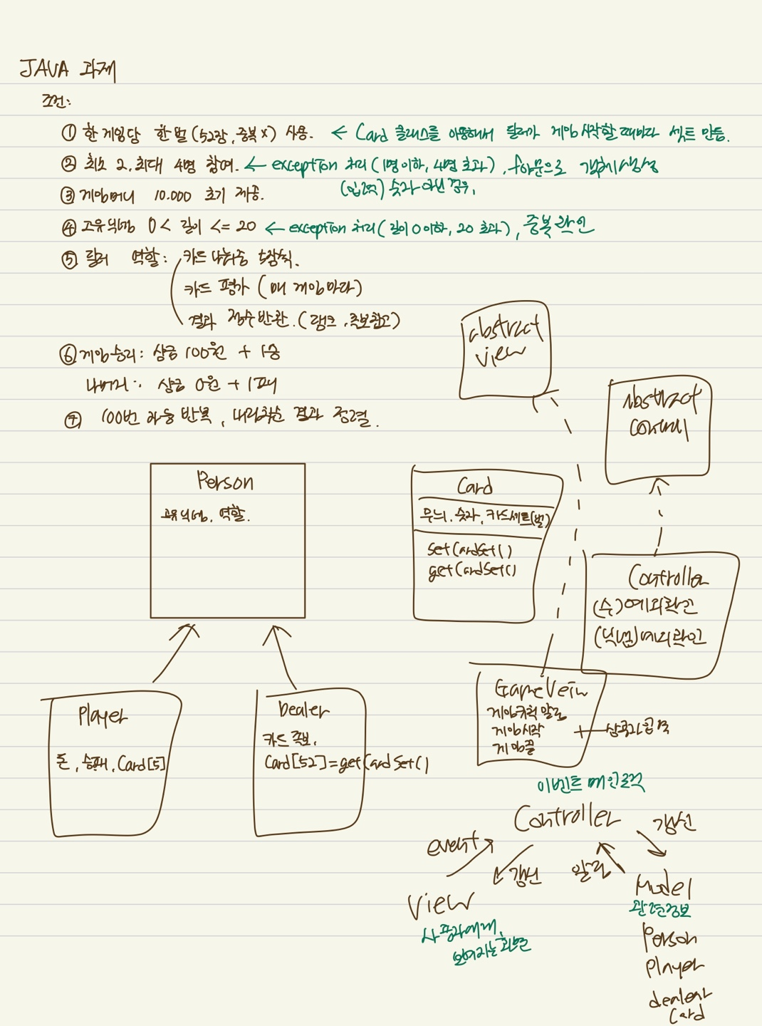 저도 다 같이 하는 프로젝트에서는 요구사항을 모두가 알아볼 수 있게 형식화된 것을 사용하는 것을 좋아하지만, 혼자 하는 프로젝트는, 특히 처음 해보는 경우에는 이렇게 낙서하듯이 정리해 보는 것도 괜찮다고 생각해요. 이렇게 요구사항을 정리하면 과제에 쓰여있는 룰을 읽는 것과 다르게 이해하는데 도움이 되더라구용.