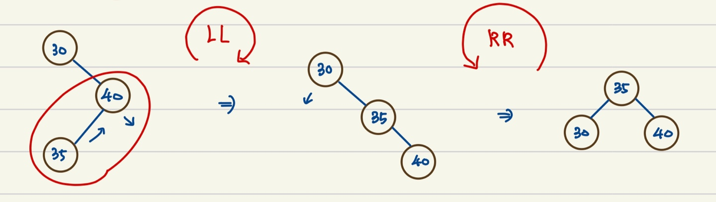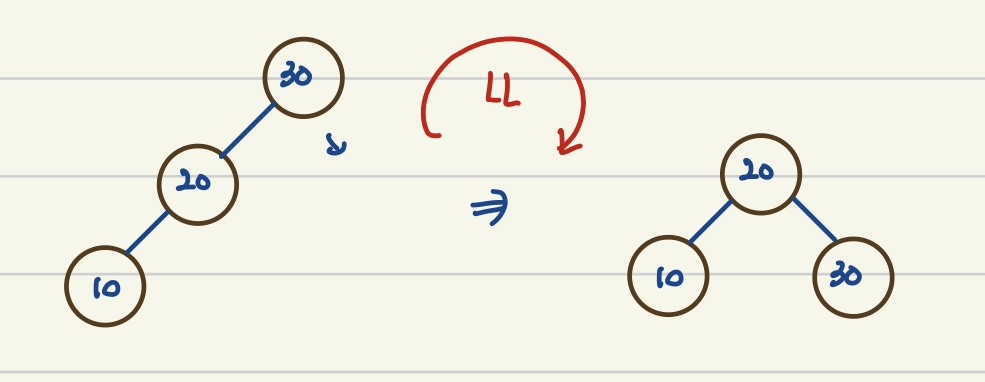 - ex) LL: 왼쪽으로 노드들이 치우쳐져 있으므로 오른쪽 방향으로 회전